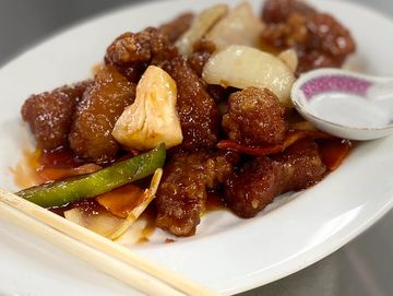 Classic flavors of Deep-fried pork pieces in a mouthwatering sweet and sour sauce